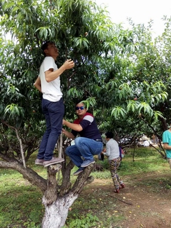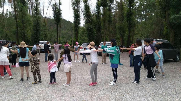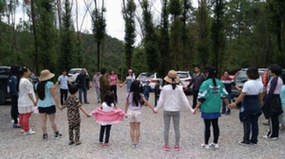 到達(dá)目的地下車后,在6位小朋友活躍的感染下,我們大孩子們也顯得蠢蠢欲動,按捺不住心中的喜悅,好奇地等待我們接下來的行程活動。穿梭在那桃子成熟的山林里,大家在主教的帶領(lǐng)下繼續(xù)行走,紛紛議論著,時不時跑出隊(duì)伍去“偷摘”樹上紅彤彤的桃子、金燦燦的李子。午餐之前,主教首先詳細(xì)講解了活動要領(lǐng)跟細(xì)節(jié),并通過牽手圍圓圈、賣湯圓等幾個緊扣“追憶童年時光,找回天真笑臉”主題活動的小游戲展開熱身活動,調(diào)動學(xué)員的活動積極性及團(tuán)結(jié)意識,大家都沉浸在活動的喜悅中,享受著這緊張而簡單卻又不留神容易出錯的小游戲里。