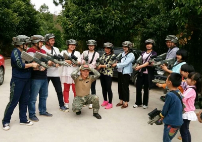 18日,我們早早地吃完早點(diǎn),收拾完帳篷,就開始了活動最刺激的真人CS實(shí)戰(zhàn)對抗賽。主教耐心地教我們識裝備、武器,試武器。講教完畢后,兩個小分隊(duì)展開了3次激烈的比拼。賽場上,各自小隊(duì)長部署戰(zhàn)略,學(xué)員各自發(fā)揮,各種姿勢,各種表情在戰(zhàn)斗中齊齊展示。人人都從緊張到了笑聲百出。活動接近尾聲,教練組織了授旗儀式,大家在依依惜別之際,照相留念,借以記住這美好的時光。